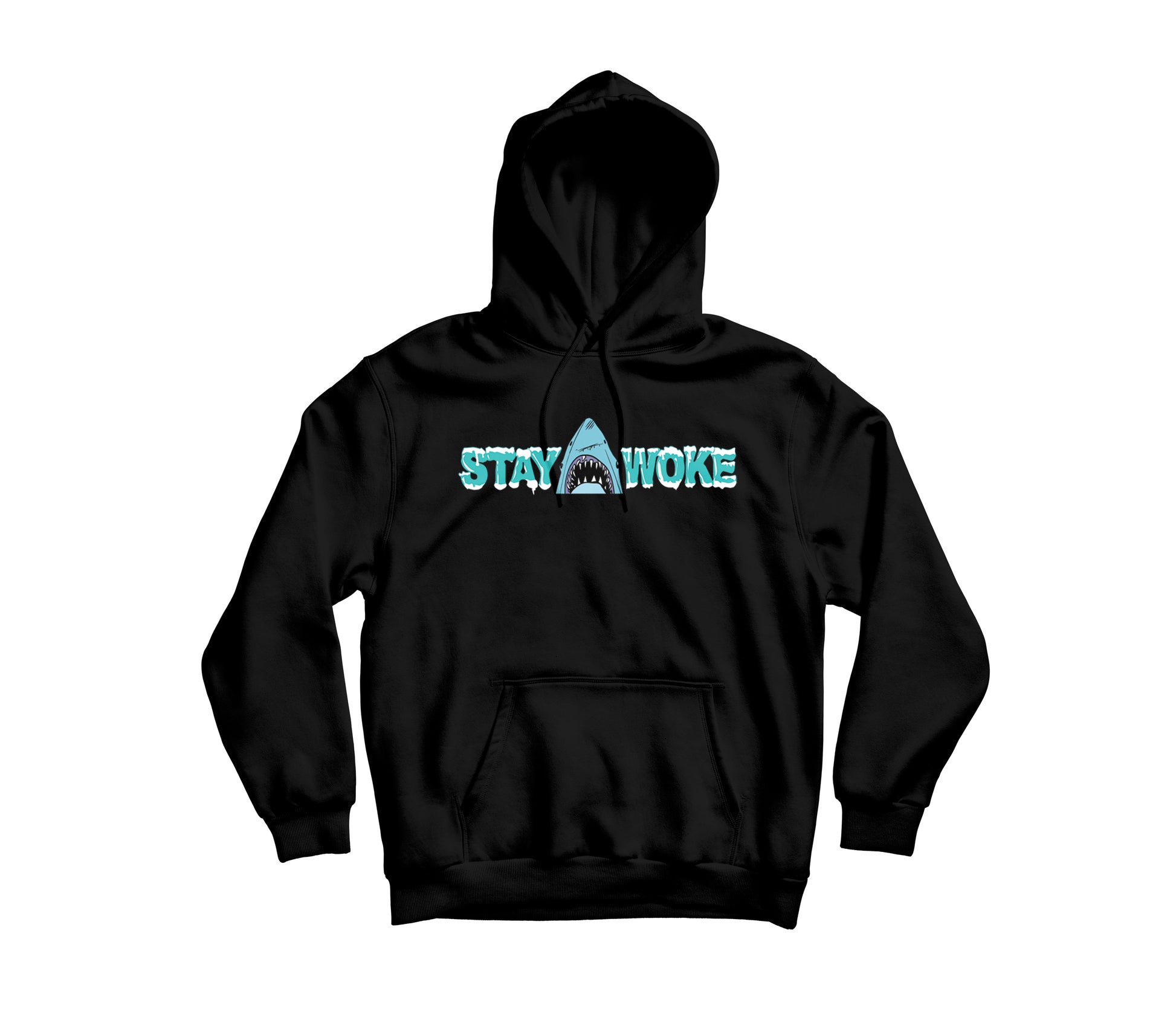 Introducing the Stay Woke Shark Hoodie in black, made with a blend of 50% cotton and 50% polyester for ultimate comfort. Stay warm and stylish in this sleek black hoodie while promoting the message of staying woke.